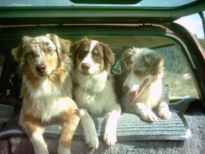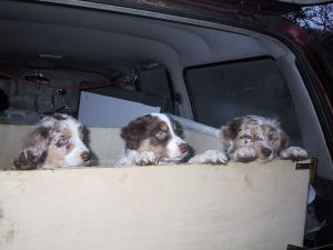 Die beiden red-merle und blue-merle Welpen sind Rüden, die beiden black-tri und red-tri Welpen sind Mädels.